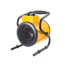 La estufa tiene una carcasa amarilla resistente, es fácil de mover y pesa solo 4,7 kilos. Con unas dimensiones de 38 x 30,5 x 30,5 centímetros, ocupa poco espacio, mientras que la clasificación IPX4 la protege contra las salpicaduras de agua. El cable de conexión de aproximadamente 1,5 metros se suministra de serie con un enchufe, pero este se puede quitar fácilmente para conectarlo directamente a una toma de corriente. Esto no afecta a la garantía de dos años.