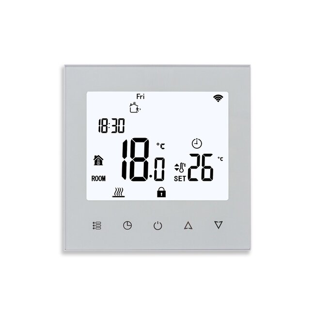 El termostato de diseño PRF-78 tiene un hermoso diseño con teclas de Soft Touch. El termostato de pantalla táctil es un termostato de habitación programable que se puede conectar a su calefacción por suelo eléctrico. Este termostato tiene un aspecto notablemente bonito y es uno de los más avanzados de su tipo. El termostato programable Soft Touch tiene un programa de 5 + 2 días. Este termostato está disponible en color blanco o negro.
