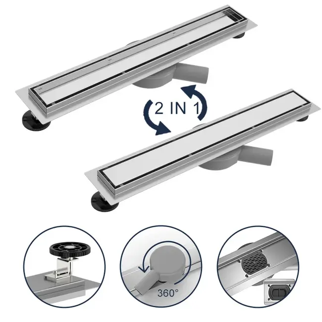 Disfrute de la combinación perfecta de diseño, funcionalidad y fiabilidad con el canal de ducha Nurion Lunadrain. Este canal de ducha de alta calidad está fabricado con un robusto cuerpo de acero inoxidable y una inteligente carcasa de sifón de PVC. Gracias a su salida lateral giratoria de 360 grados, Lunadrain ofrece la máxima flexibilidad a la hora de conectarse al desagüe, lo que lo hace ideal para proyectos de renovación o situaciones con espacio de instalación limitado.