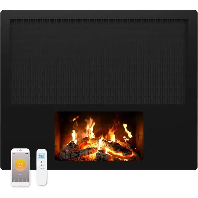Este panel infrarrojo no calienta el aire, sino directamente los objetos y las personas que se encuentran en la habitación. Esto proporciona una sensación muy agradable y evita la pérdida de calor. Al mismo tiempo, la pantalla LCD crea un precioso juego de llamas, lo que le permite disfrutar del ambiente de una chimenea tradicional sin humo ni mantenimiento.